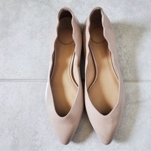 Great used condition patent leather scallop chloè flats , one shoes has a stain that I’m not sure if it would come off, I haven’t tried cleaning it. Soft blush pink. Final sale