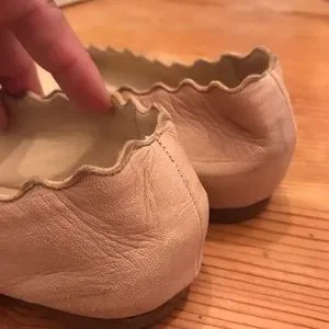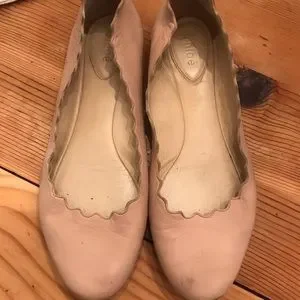 Pink Chloè flats. Show some wear and discoloration but no rips. The front of the shoe shows some scuffs. Final sale