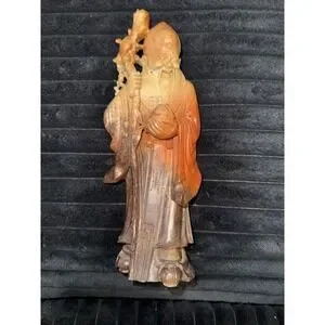 Chinese Soapstone Statue Carving Shou Lao God of Longevity Figurine 9.5"