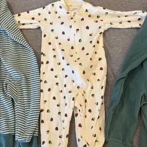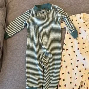 Set of 3 gently used in great condition footless sleepers/rompers size 6 months. Comfortable long sleeves and full-length coverage for play and sleep. Smoke free and pet free home. Check out my other listings to bundle and save!