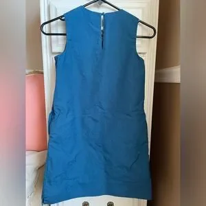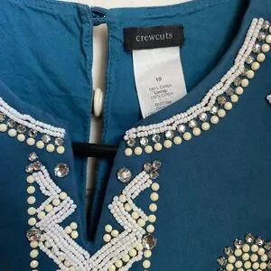 Chic teal dress with bead and gem embellishments. Ideal for stylish outings. Fully lined, zipper on side, and has pockets