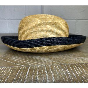Handmade Bunn. New York Straw Sun Hat Black Rim Classic Natural Tan