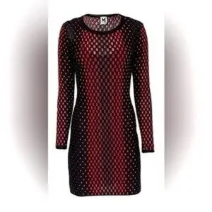 M Missoni Black Red Ombre Pattern Knit Long Sleeve Sheath Dress Size M