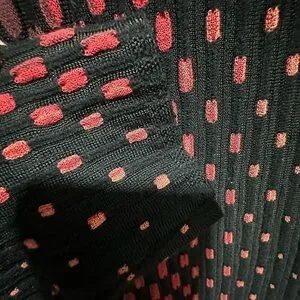 Chic long sleeve dress with a striking red and black pattern. Perfect for stylish evenings.