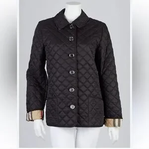 Beautiful BURBERRY BLACK QUILTED WOMEN JACKET. Excellent condition. No tear or rips. 100% authentic. Looks amazing on person. Lightweight quilted bomber jacket in black. Button-front closure with large round buttons. Classic Burberry check on collar and cuff accents. Two front patch pockets for easy storage. Clean, streamlined silhouette for layering.