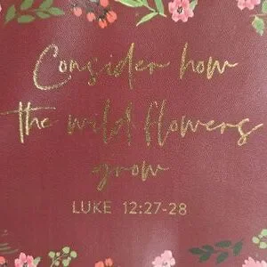Bible Verse Floral Burgundy Zip Pouch – "Consider how the wild flowers grow"