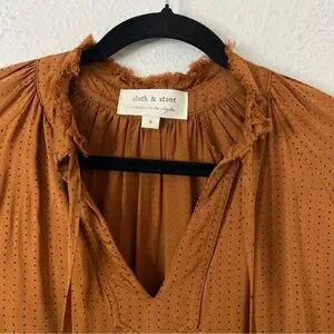 Cloth & Stone Ruffle Long Sleeve Blouse Size Small Dotted