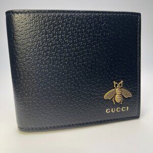 Gucci Grained Leather Bifold Wallet with Bee Insignia in Black - NWOT