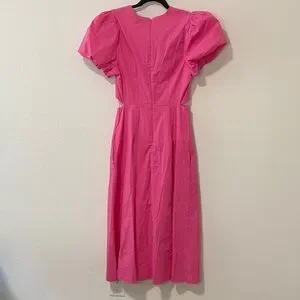 Sexy Pink Puff Sleeve Cut Out Dress with Pockets Wedding Guest Garden Party
