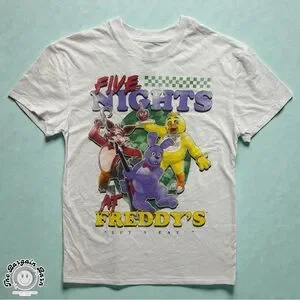 Five Nights at Freddy’s Graphic T-Shirt FNAF Characters White Horror Tee (Md)