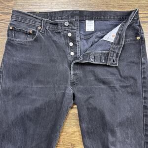 Vintage 90s Levis 501 Jeans Men 36x34 Black Straight Button Fly Denim Distressed