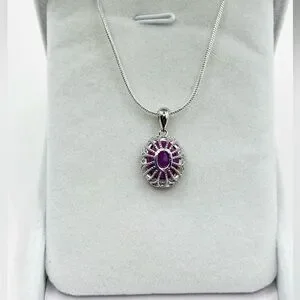6.38 CT Natural Ruby Sterling Silver Pendant Necklace