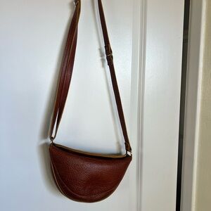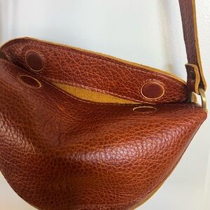 Elegant leather bag with a rich texture. Features a sleek design and subtle branding.
