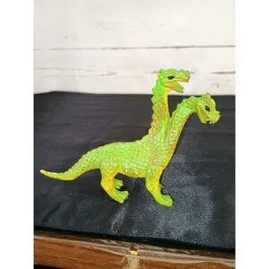 Some minor scuffs on the plastic surface, typical of prior use. Measurements: Largest dinosaur height = 8 inches, winged dragon length = 6 inches.