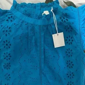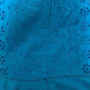 Elevate your wardrobe with this stunning blue eyelet lace blouse. Perfect for any occasion, this top combines elegance with comfort. The intricate lace detailing adds a touch of sophistication.