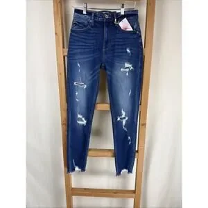 NWT Kancan Blue Distressed High-Rise Skinny Ankle Jeans Size 24 #0798