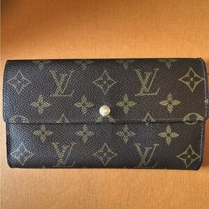Selling this iconic Louis Vuitton Sarah long wallet in the timeless Monogram coated canvas. This is a vintage piece that has been exceptionally well-maintained, perfect for anyone looking for that classic LV look with durable craftsmanship.