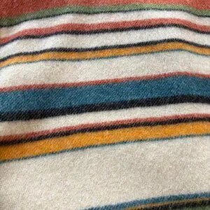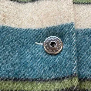 In excellent condition - no holes, snags or stains! The vintage Woolrich wool coat has all the characteristics for quality and value - southwestern stripe in great colors, quality metal buttons (all present), lined, 70% wool and 30% mohair, and roomy pockets. This jacket is a women's size M (but oversized). Made in USA. A beautiful and stylish addition to any closet.