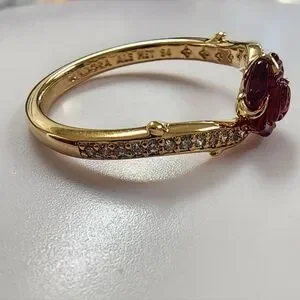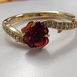 Add an enchanting touch to your look with our Disney's Beauty and the Beast ring. Crafted in 14k gold plating, it features a Murano glass rose with sparkling stones and thorn details along the band.