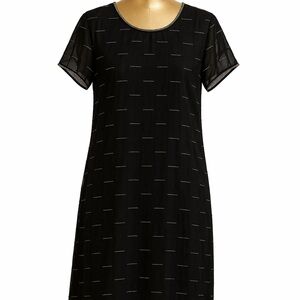 Michael Stars Sheer Black Shift Dress Metallic Stripe Short Sleeve Layering Med.