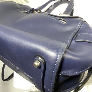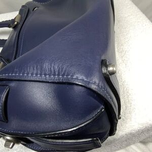 • Navy Blue Glovetanned smooth leather and brushed silver tone hardware. NOTE the color is slightly darker than the pictures turned out