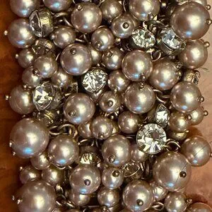 Wide statement bracelet by J.Crew featuring a dense cluster of pearl beads accented with faceted crystal stones for added sparkle. They almost have a touch of pink.