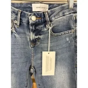 NWT Dear John Blue Distressed 5-Pocket Button Zip Skinny Jeans #1185 Size 25