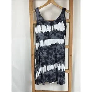NWT Zen Knits Gray Tie Dyed Scoop Neck A-Line Midi Tank Dress #0880 Size L