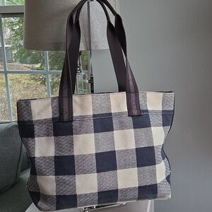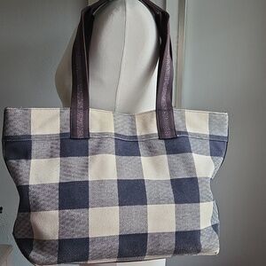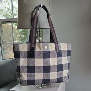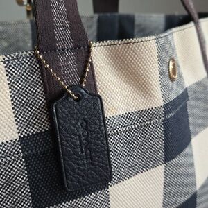 COACH Navy Buffalo Plaid Canvas Tote