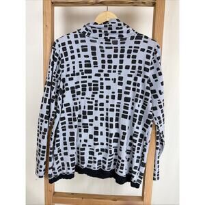NWT Fenini Gray Black Cowl Neck Pattern Long Sleeve Top #0987 Size Small