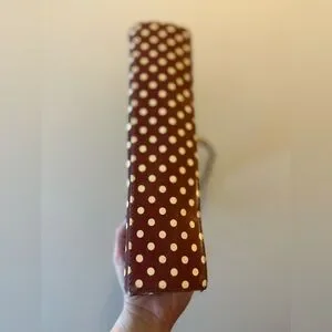 Chic and stylish brown handbag with playful polka dots. Perfect for any occasion. Clean and in perfect condition.