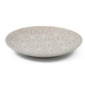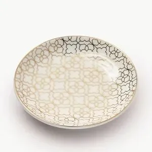 Kendra Scott stylish and elegant ceramic ring dish with intricate goldtone logo patterned design. Perfect for display or gifting.