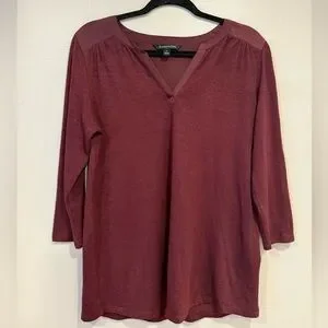 41 Hawthorn V-Neck Knit Top 3/4 Sleeve Burgundy Women's Size M