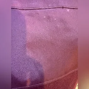 Fair condition. A few white spots on the back left shoulder blade. Normal wear and tear under the armpits on both sides. See photos. No other flaws.