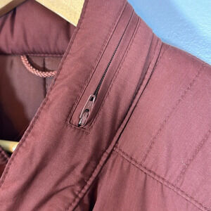 Vintage London Fog Jacket Women’s Size 14/44 with hide away hood. Jacket is a red color in some lighting and a nice fall orange-ish red in other lighting!
