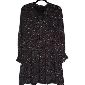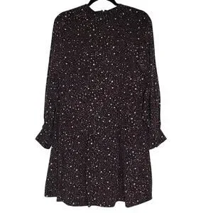 A star-scattered silk dress with pretty details like covered buttons on the sleeves and ties at the neck (let them hang loose or knot them in a soft bow). Nonwaisted. Falls 36" from high point of shoulder. Silk.