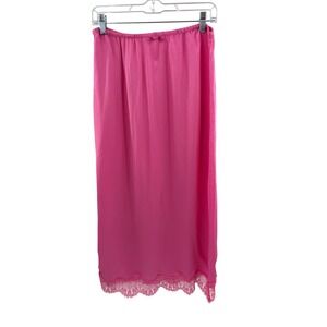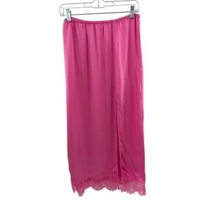 Aerie Womens Pink Lace Trim Midi Skirt Elastic Waist Side Slit Size Medium