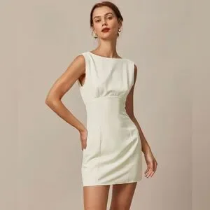 This Cutout Mini Dress is a stunning and elegant dress that is perfect for any occasion. The boat neck, sleeveless and back cutout deisgn adds a touch of sophistication to the dress, while the back bowknot deisgn add a unique and eye-catching element. The natural waisted and slim fit make it comfortable and easy to wear, while also creating a flattering silhouette that accentuates the figure.