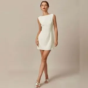 NWT RIHOAS The Beige Boat Neck Back Bowknot Mini Dress Sz S