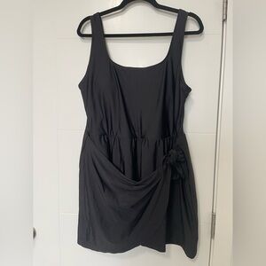 Scoop neckline and wide straps. Fitted waist with draped skirt overlay and a side knot detail. Never been worn, only tried on.