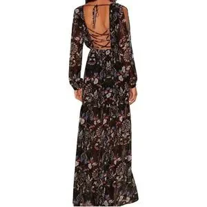 Deep V neckline, and cold shoulder long sleeve, with lacing design back