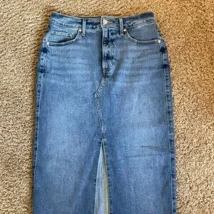 Express Denim Maxi Skirt Front Slit Jean Long Skirt High Waisted Blue Size 4