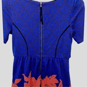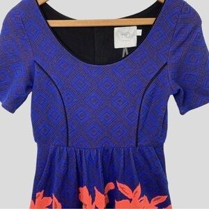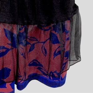 HD in Paris Retro Style Skater Dress Women’s XSP Blushed Blooms Knit Coral And Navy Layered Tulle Floral Double Bodice