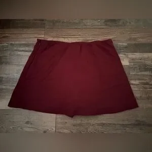Chic burgundy skirt with side slit. Perfect for casual outings. Built-in shorts.