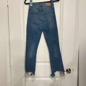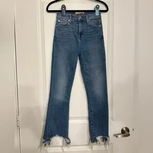 7 For All Mankind High Waist Slim Kick Jeans with Shredded Frayed Hem Size 25