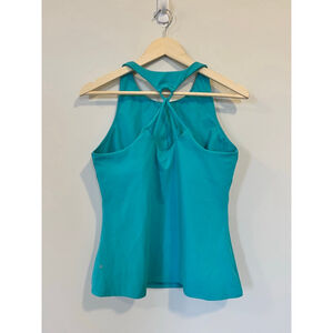 High Neck Teal Powersoft Workout Tank Shelf Bra Fitted Yoga Gym Athleisure