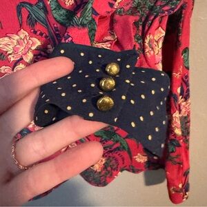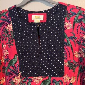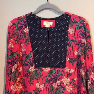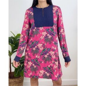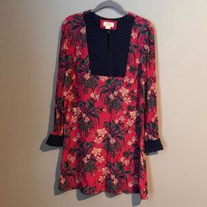 Anthropologie Maeve Floral Long Sleeve Dress with Polka Dot Accents