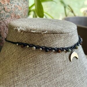 Handmade micro macrame boho fairycore choker necklace with genuine stone and stainless steel beads.
