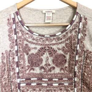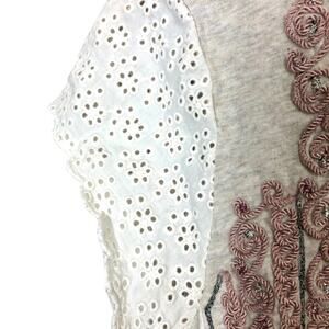 Sundance Embroidered Rope Yoke Eyelet Sleeve T-Shirts Tan Size Small