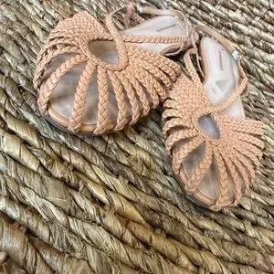 Anthropologie Joelle Braided Tan Slingback Sandals
